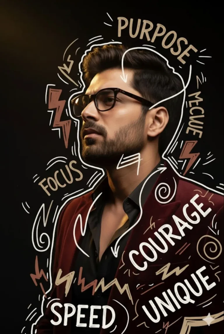 Make the doodles dynamic with handwritten typography, arrows, lightning bolts, swirls, and abstract strokes, integrated into the composition so they enhance the subject without overpowering it. The style should keep the same energetic and modern vibe as the reference.