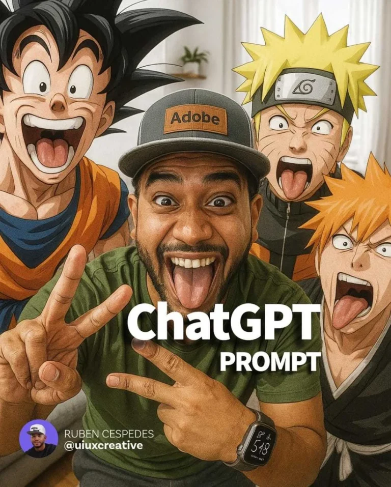 Ultra-realistic 9:16 vertical format fisheye selfie of me with [Goku, Naruto, Ichigo,]. We’re all making silly, exaggerated faces. Set in a small, bright living room with white tones. High camera angle. Extreme fisheye distortion. Realistic, cinematic lighting, anime characters integrated with stylized realism.