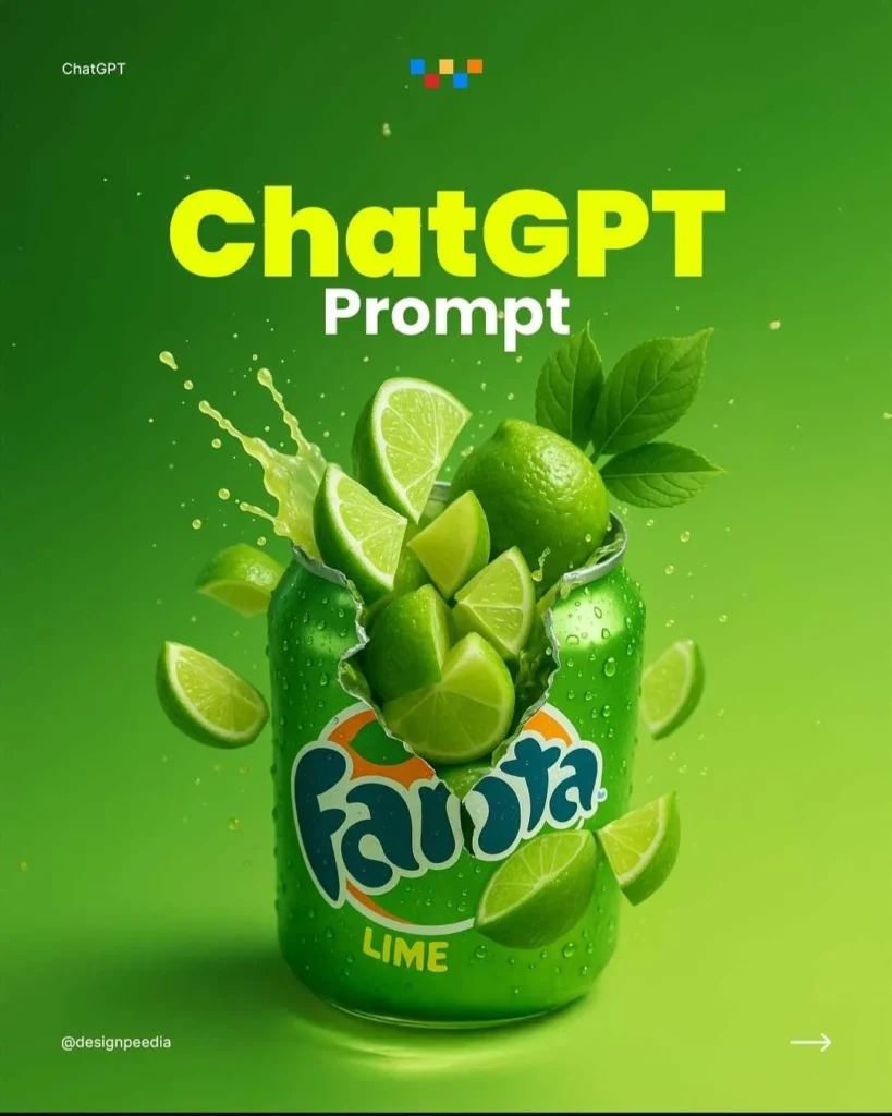 A hyper-realistic, ultra-detailed 3D digital advertisement showcasing a Fanta Lime soda can torn open at its center, revealing a burst of fresh, plump lime spilling out. The can’s metallic surface is rendered with sharp, realistic textures, including water droplets and natural reflections. The lime & cuts appear juicy and vibrant, some flying outward with dynamic […]