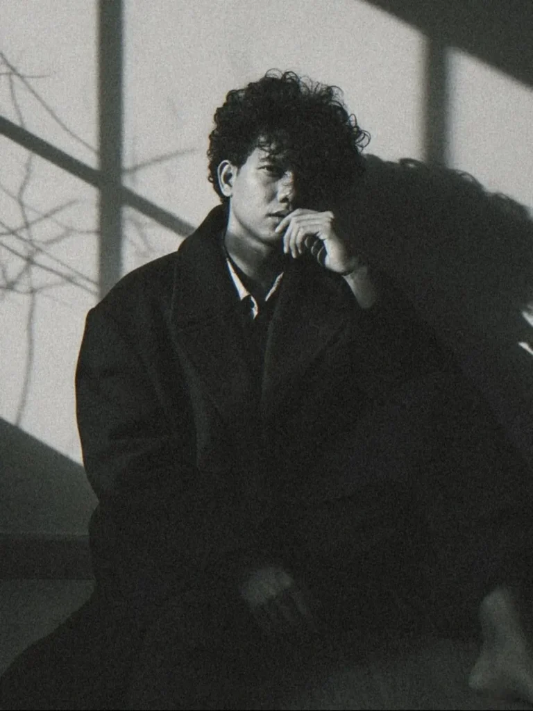 A black-and-white aesthetic portrait of a stylish me(use my image with accurate face 100%) sitting on the floor in dramatic lighting. He is wearing an oversized dark coat, with messy, voluminous hair partially covering his face. His pose is emotional and introspective, sitting on chair and his head slightly turned to the side. Shadows from […]