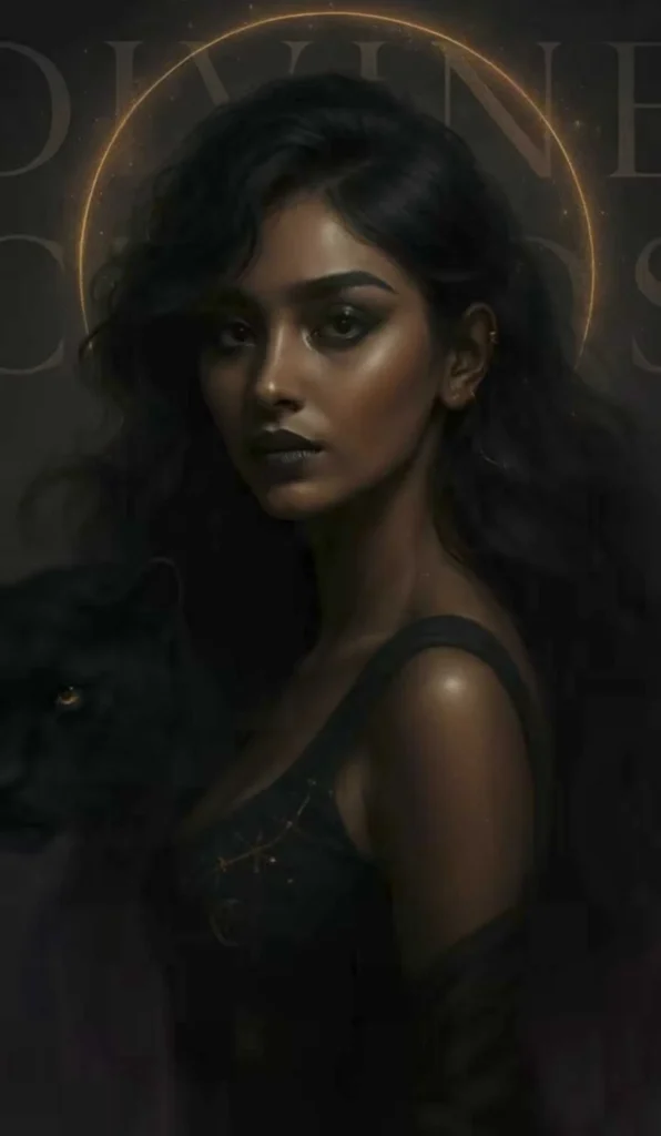 A hyper-detailed, ultra-realistic portrait of a young woman with the same facial structure as the uploaded photo. She exudes divine feminine power with an aura of mysterious elegance-embodying the energy of a black cat goddess. Her deep, intense eyes gleam like obsidian, holding secrets of ancient wisdom. Her hair flows in voluminous dark waves, adorned […]