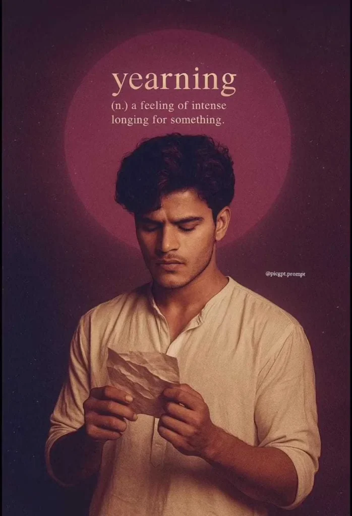 Create a retro-style, cinematic digital portrait of me. I am shown from the waist up, standing under soft, moody lighting with warm magenta and pink tones. I’m wearing a plain off-white kurta with slightly rolled-up sleeves. I am holding a crumpled piece of paper in both hands and looking at it with a serious, emotional […]