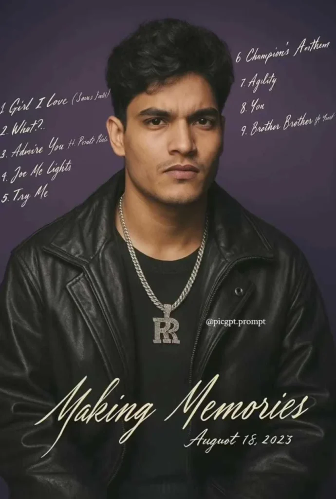 Create a hyper-realistic promotional album cover featuring me. Use my face exactly as in my selfie – keep all facial features and expression the same. Remove my glasses and make my skin fair and flawless. My hairstyle should be medium length, voluminous, and wavy. Place me in front of a dark purple gradient background. I […]