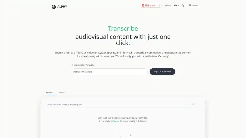 To use Alphy, simply upload or provide a link to the audio or video content you want to record, transcribe, or create a question for. Alphy’s AI algorithms will process the content and deliver the right text, summary, and suggested questions based on ideas. Users can request these services to get audio files online and locally.