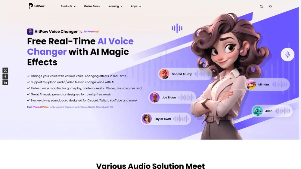 HitPaw Voice Changer is a program that lets you change your voice in real-time while talking, games, or even making movies. It uses AI to make different voice effects, like making you sound like a robot or a cartoon character.