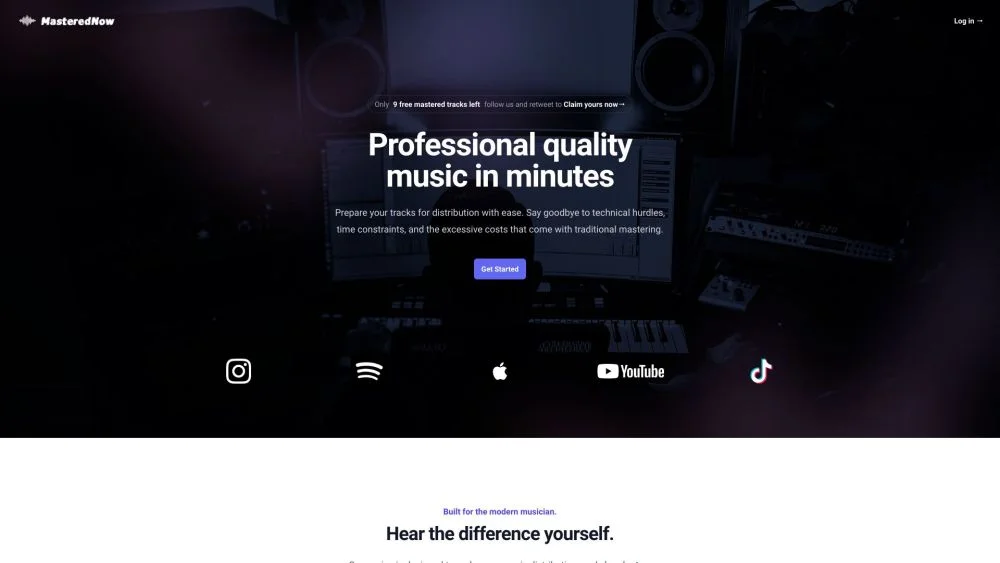 MasteredNow Quickly have your music optimized for YouTube, Instagram, Spotify, TikTok, and many more platforms.