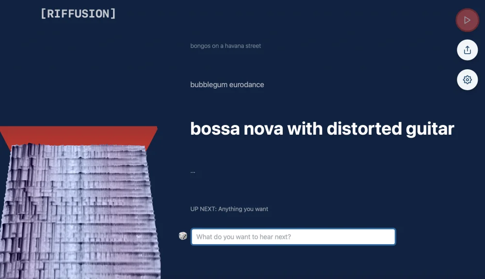 Riffusion is a platform that enables stable diffusion for real-time music generation.