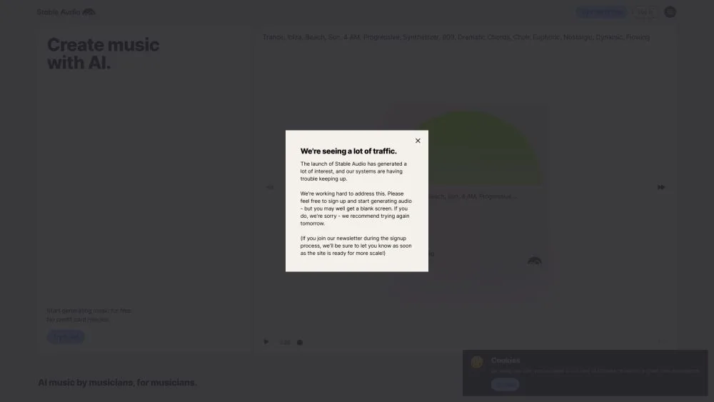 Stable Audio is a website that creates music and sound effects using artificial intelligence (AI). With the help of their primary product, Stable Audio, users may compose and produce music tracks up to three minutes in length by inputting audio samples and optionally supplying written descriptions. Those who want to create music but lack the necessary instruments or musical skills may find this helpful. A user manual is also available to assist users in getting started with the platform.